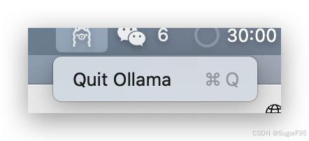 如果你是 macos,就可以在菜单栏看到 Ollama 的小图标啦,这表明基础环境已经 ok。