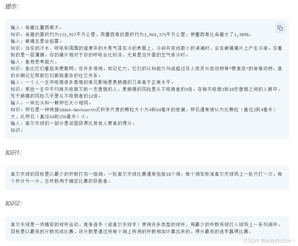 这种错误揭示了 LLM 在执行需要更多关于世界的知识的任务时的局限性。我们如何通过生成知识来改进呢?首先,我们生成一些“知识”:
