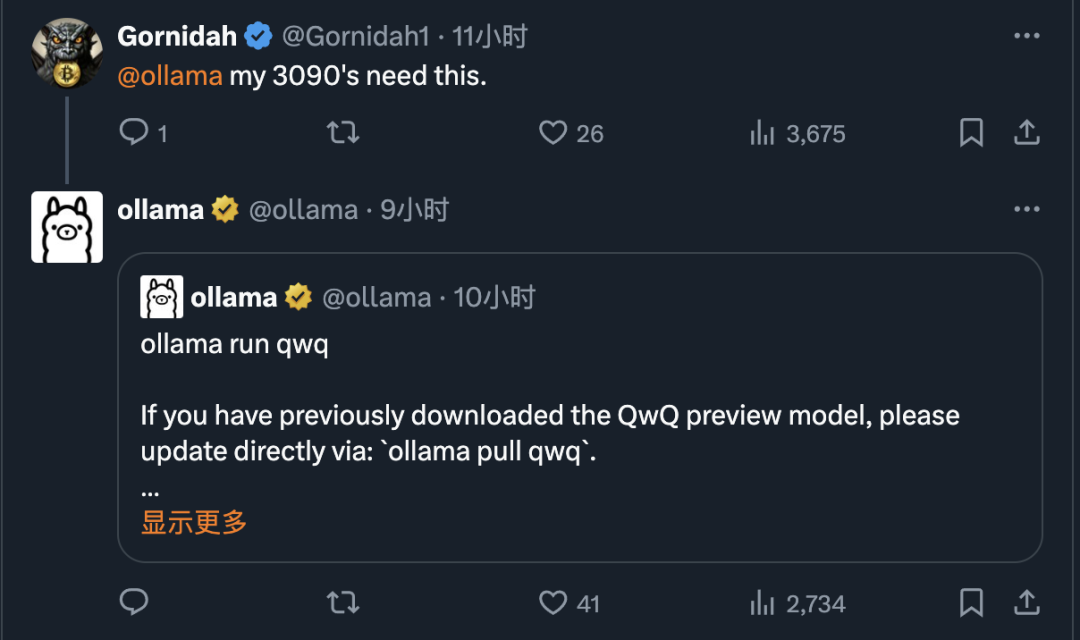 而 Ollama 的效率也极高,刚发布就支持了。
