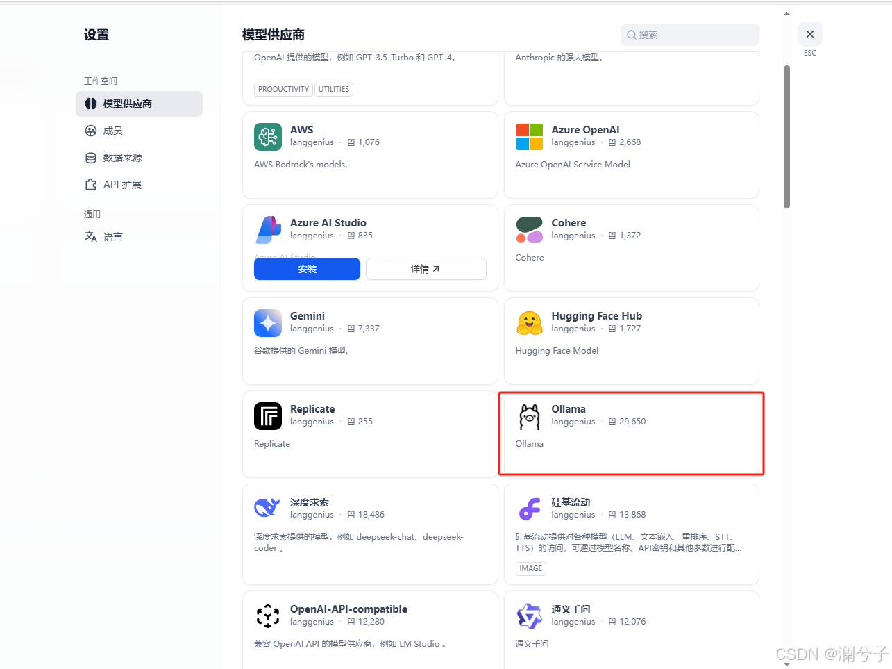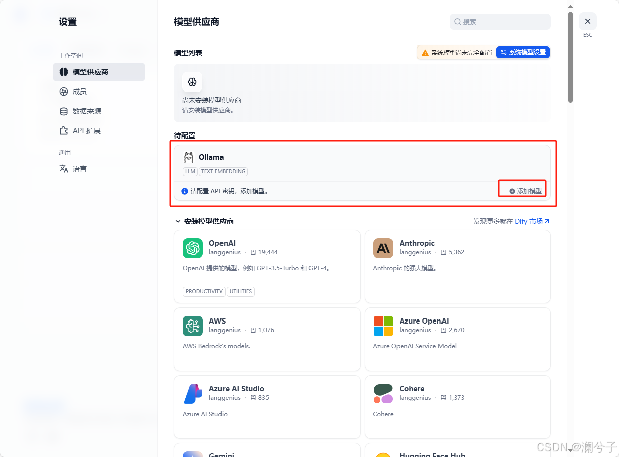 右上角头像>设置>模型供应商>Ollama