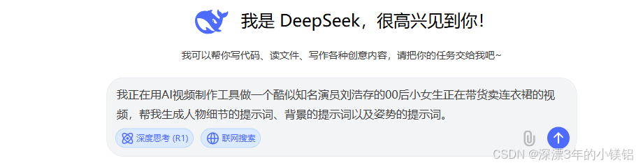 用我们刚才【DeepSeek生成的提示词】 分开三段 复制粘贴到网页中的三个描述文本框内。