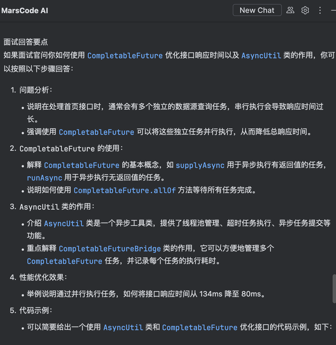 给出的答案也是恰到好处,不仅会解释 AsyncUtil 这个类的作用,还针对面试场景给出了标准回答。