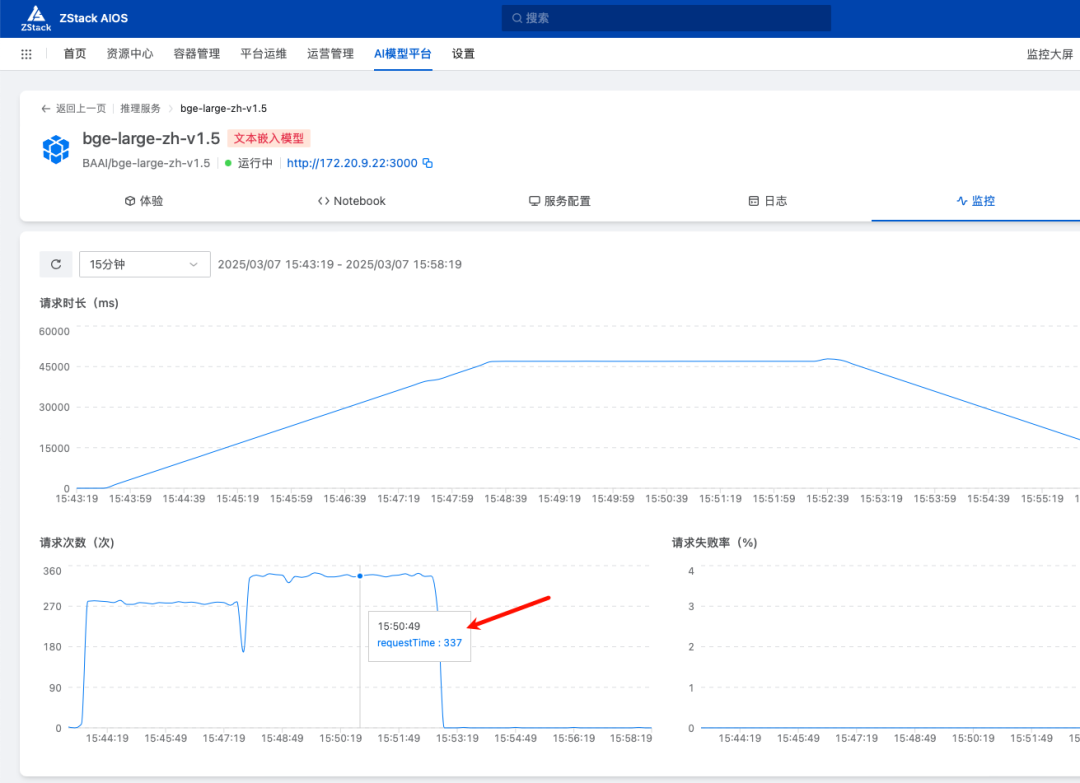 如图,通过 ZStack AIOS 智塔所支持的显存切分,可以将 24GB 卡切分出 4GB,足以满足高性能向量模型的需要,并能够提供 360 以上 QPS。