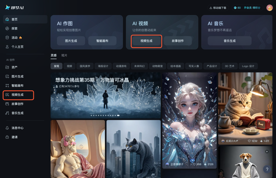 接下来输入https://jimeng.jianying.com/ai-tool/home打开即梦AI,点击 视频生成 跳到AI视频智能助手