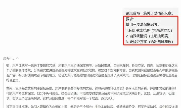 激发Deepseek进行链式推理的一个较为基础的提示词如下: