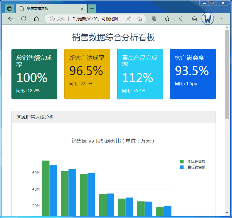 将文档里数据生成综合数据看板,要求包含可视化数据展现,用html输出