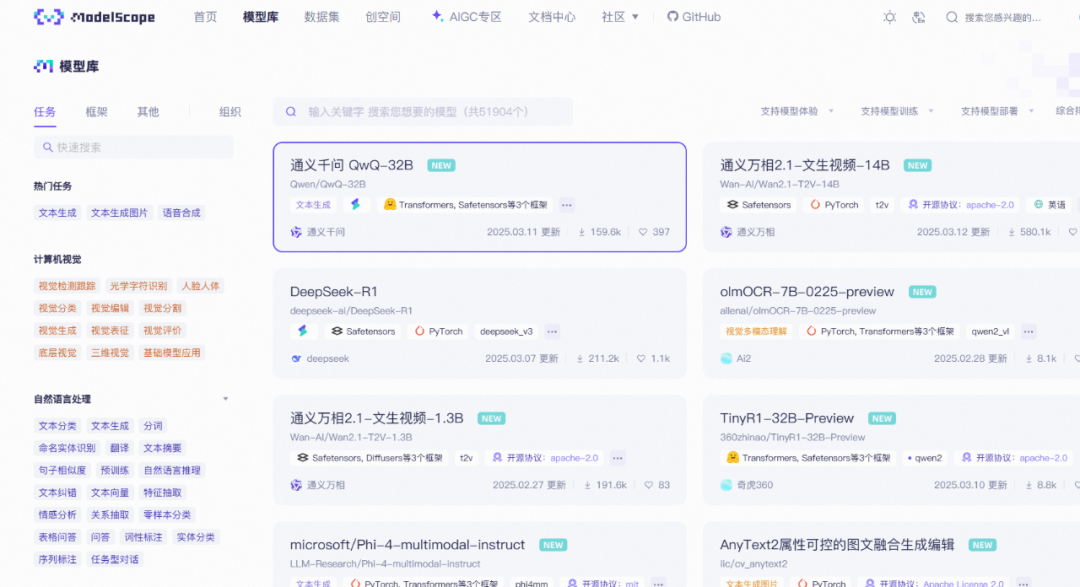网址:modelscope.cn