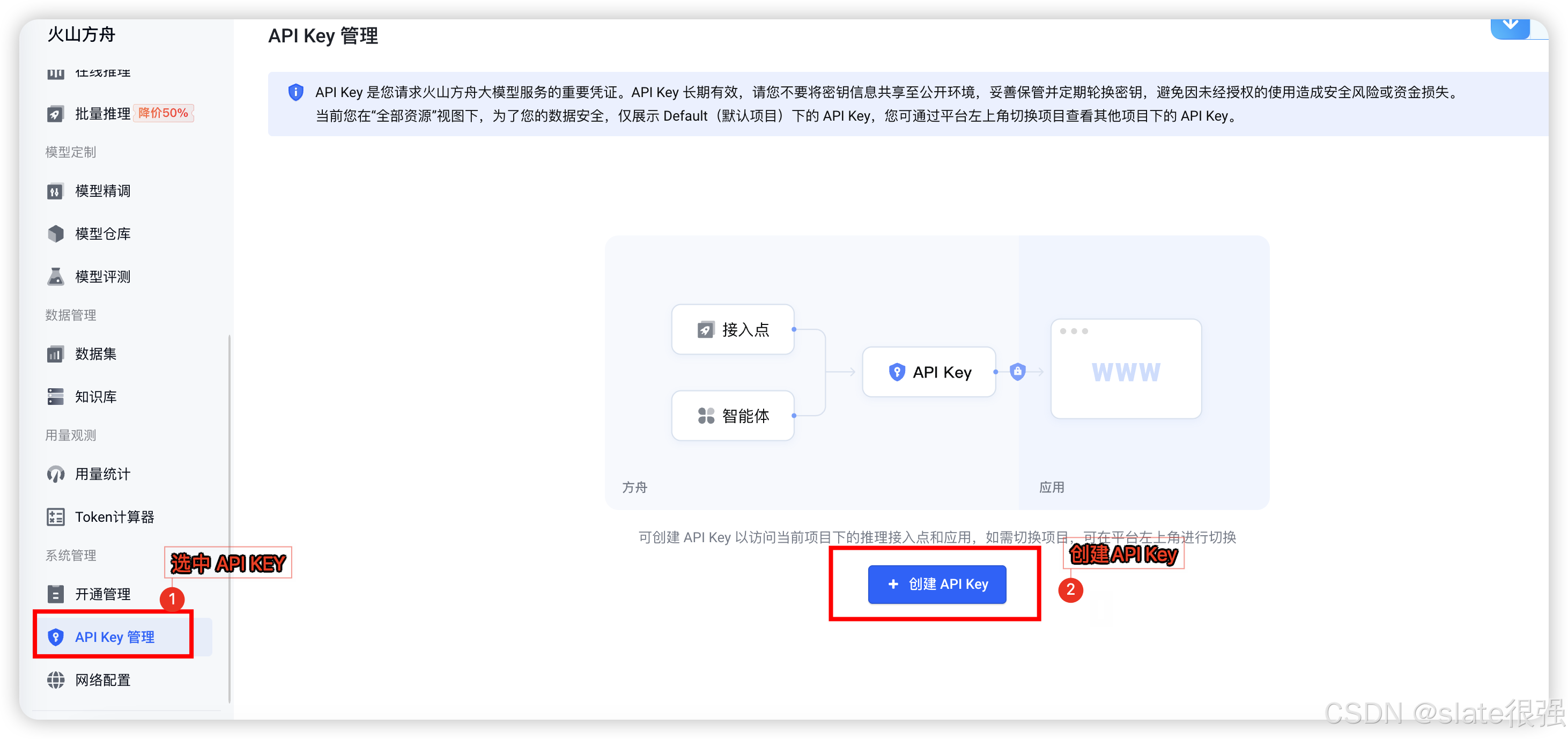 ✔️ 点击「API key 管理」→ 选择 创建 API key