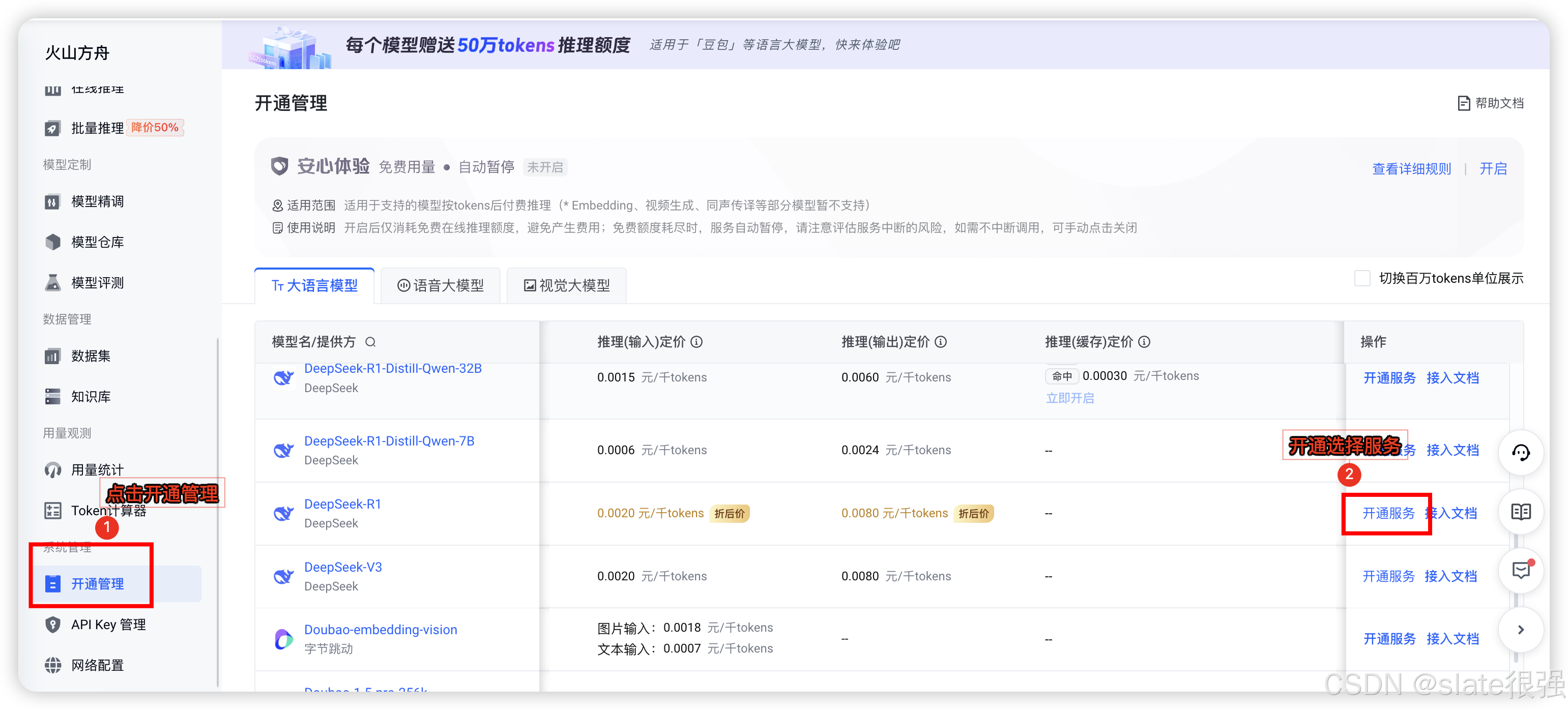 ✔️ 点击「开通服务」→ 选择DeepSeek R1