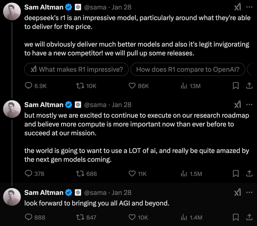 这一周真的是热闹,谁能料到,国产大模型 DeepSeek 的发布竟然引发了英伟达股价的滑跌。DeepSeek 不仅震动了硅谷,还超越了 ChatGPT,成功登顶美区 APP Store 下载第一!近日,Sam Altman 更是打破沉默,公开承认 DeepSeek 的实力,这波操作简直堪称科技界的“大地震”。