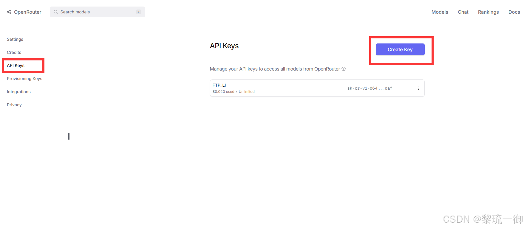 https://openrouter.ai/settings/keys - 注册账号: 点击注册按钮,填写相关信息完成注册。