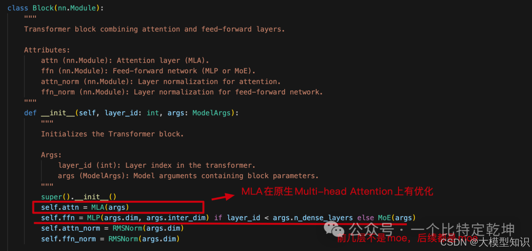 - attn 是 MLA(Multi-Head Latent Attention)替换了 Transformer 的 Multi-Head Attention