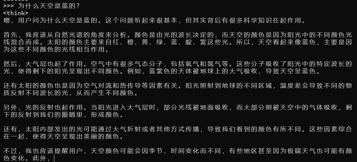 恭喜你已经在本地成功安装了第一个私有大模型。运行成功以后,我们可以直接在命令行和deepseek对话。