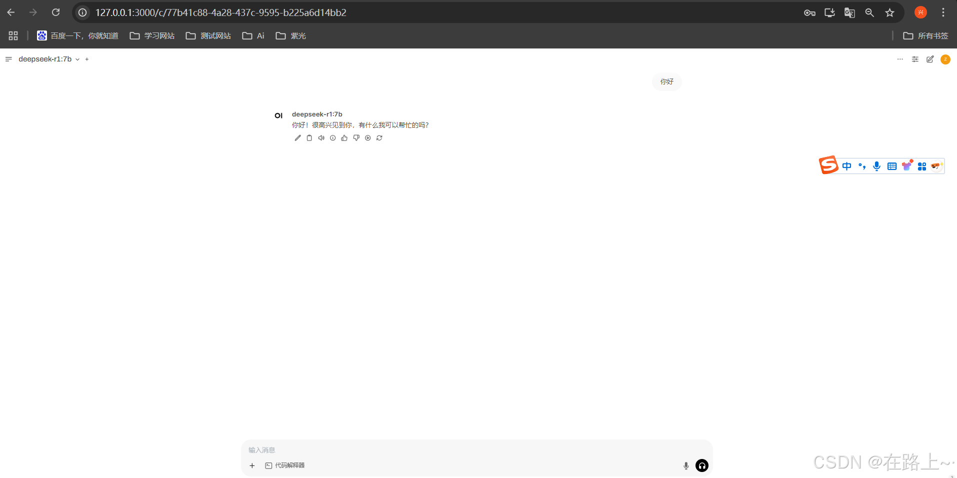 2.ollama运行deepseek-r1:7b模型:ollama run deepseek-r1:7b