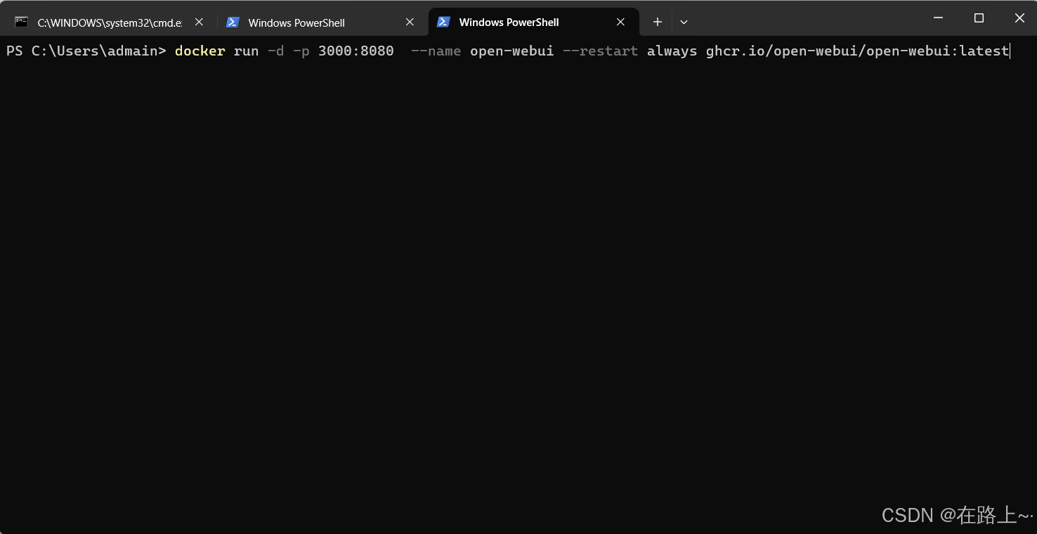 2.docker运行open-webui容器:docker run -d -p 3000:8080 --name open-webui --restart always ghcr.io/open-webui/open-webui:latest