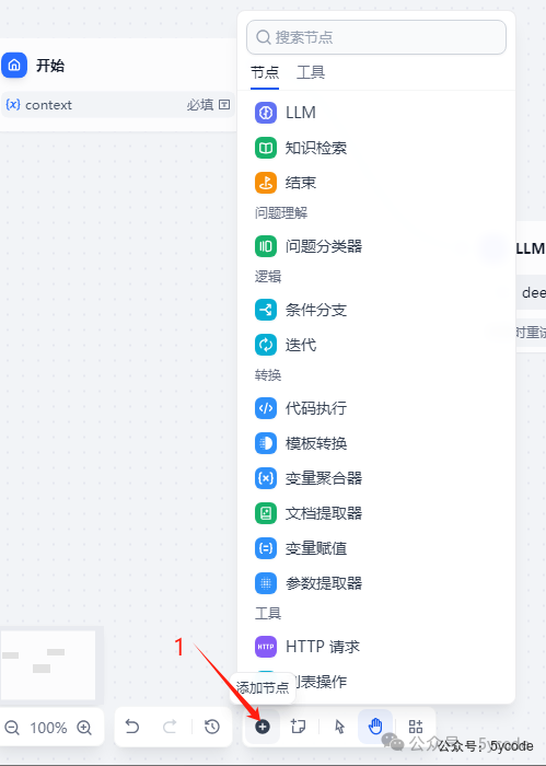 节点是工作流中的关键构成,通过连接不同功能的节点,执行工作流的一系列操作。在dify的工作流中一共有下面几种类型的节点。