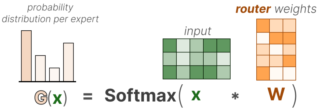 路由器不进行任何特殊计算,它只是计算输入与专家权重的乘积,并取其 softmax(与之前做的操作相同)。