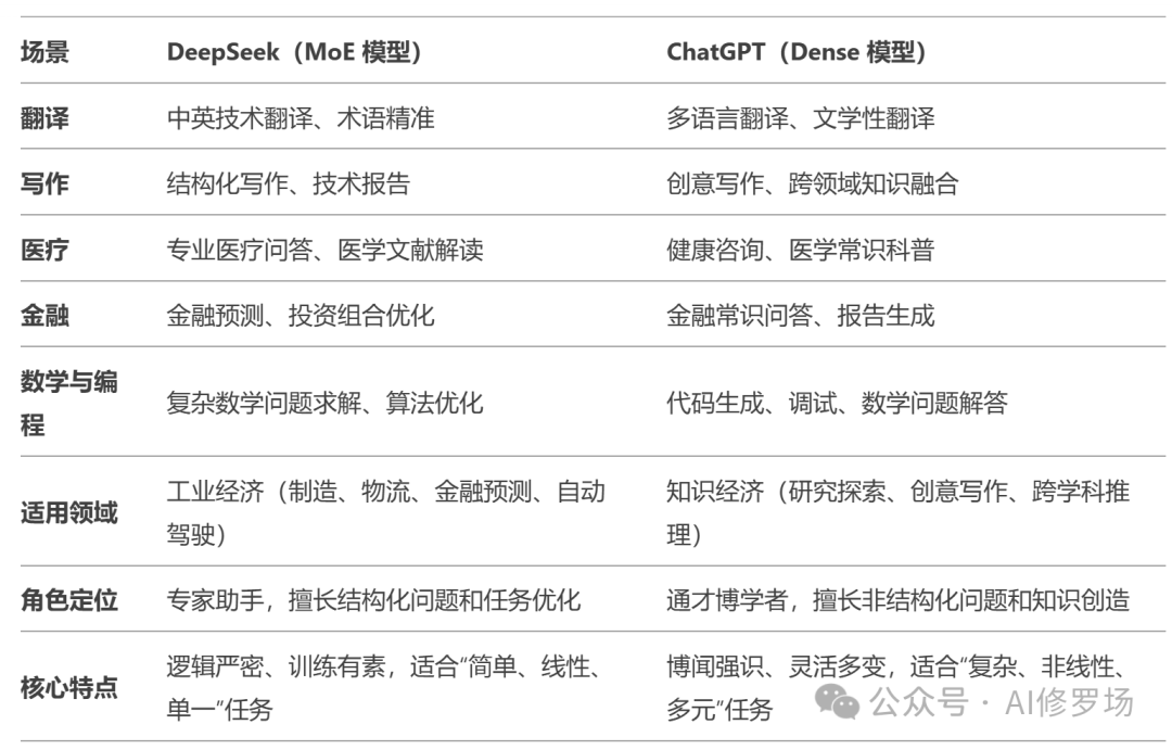 四、DeepSeek(MoE 模型)与 ChatGPT(Dense 模型)的实际应用对比