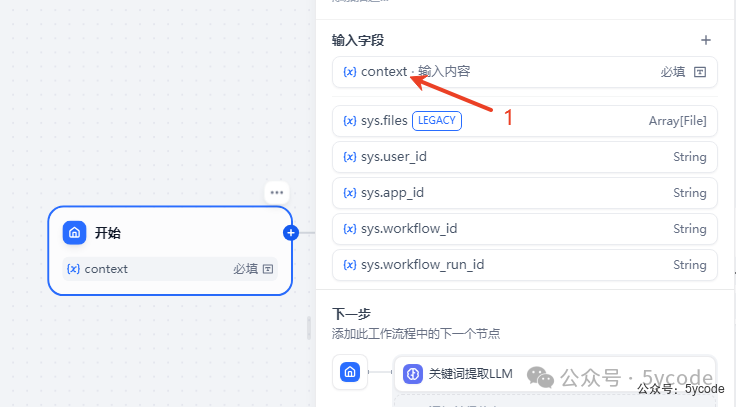 在开始节点添加一个输入字段context