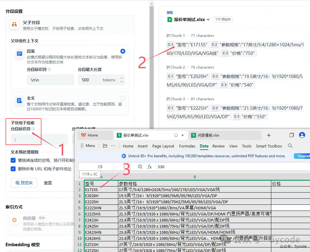 我们可以在知识库中上传企业或个人的文件资料,上传后通过设置分段格式向量化文档,