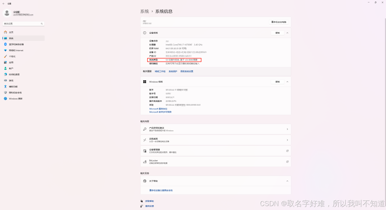 2. 按下win+i键打开系统设置界面 ——>点击系统——>找到并点击系统信息,查看系统类型来选择下载python