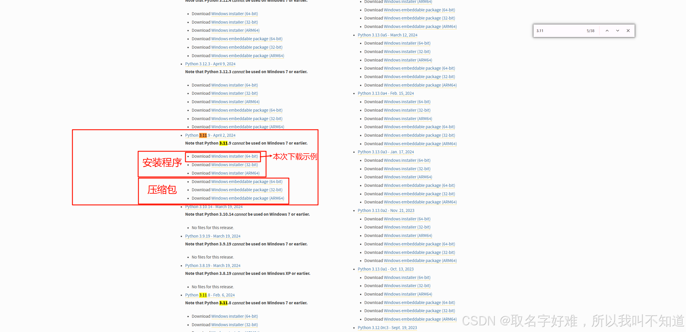 左侧为稳定版本,右侧为预发布版本,下滑找到3.11版本,可以通过ctrl+f快捷键来查找