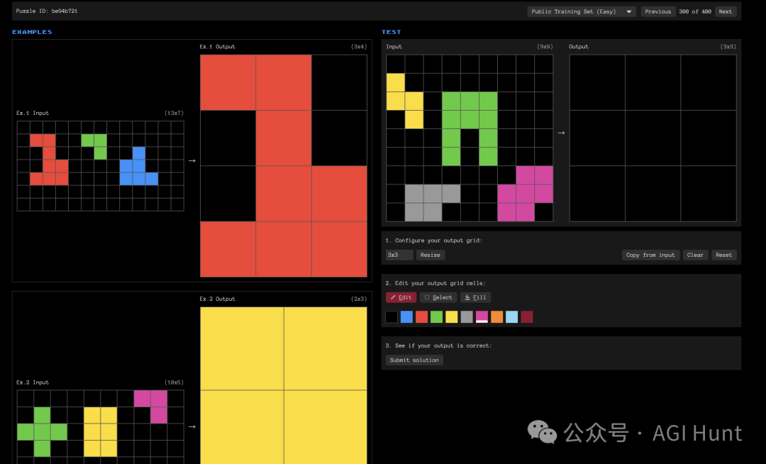 更重要的是,ARC-AGI被设计成无法通过训练模型处理数百万个示例来“作弊”。这个基准由一个公共训练集(400个简单示例)和一个更具挑战性的公共评估集(400个谜题)组成,以评估AI系统的泛化能力。