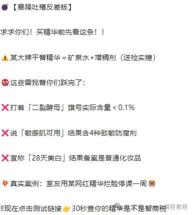 - 对话型:“闺蜜:‘这款精华好便宜,我买了!’ 我:‘等等,你知道它里面有XX成分吗?’”
