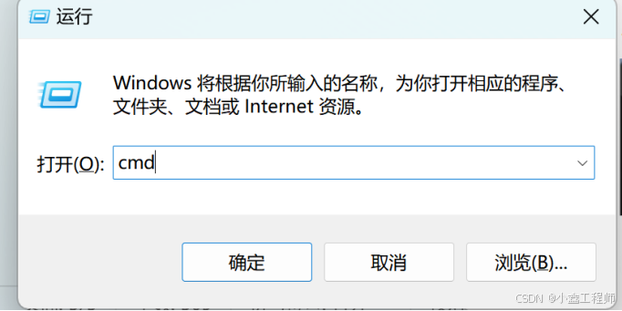 9、按同时键盘上的【win+R】;输入【cmd】,点击【确定】