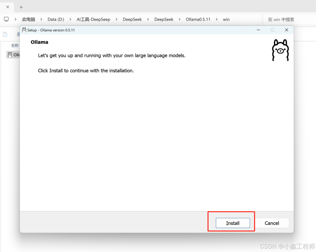 - 右键【OllamaSetup】选择【以管理员身份运行】