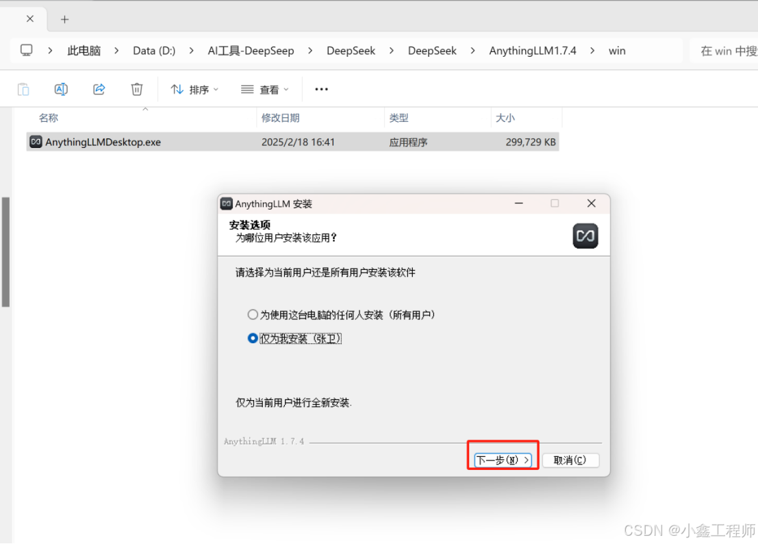 13.返回安装包;双击打开【AnythingLLM1.7.4】文件夹