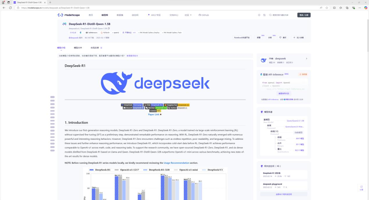 modelscope download --model deepseek-ai/DeepSeek-R1-Distill-Qwen-1.5B --local_dir ./DeepSeek-R1-Distill-Qwen-1.5B