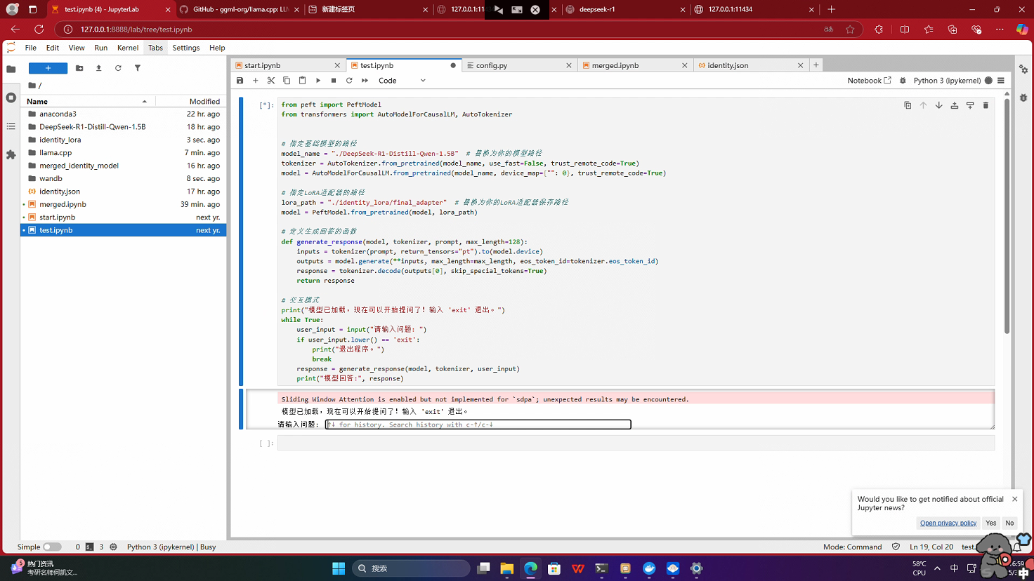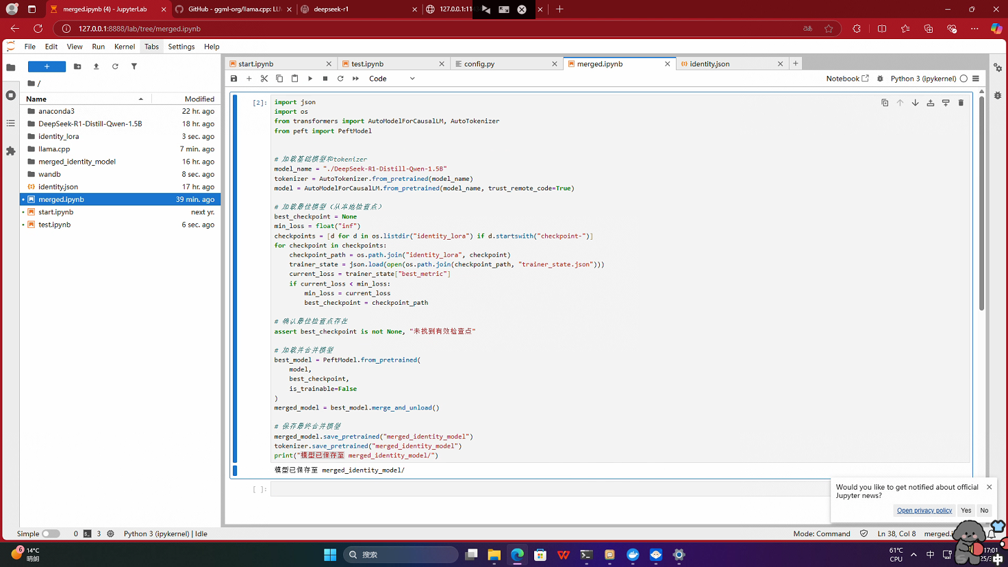 1.运行merged.ipynb合并训练后的模型,得到merged_identity_model 14