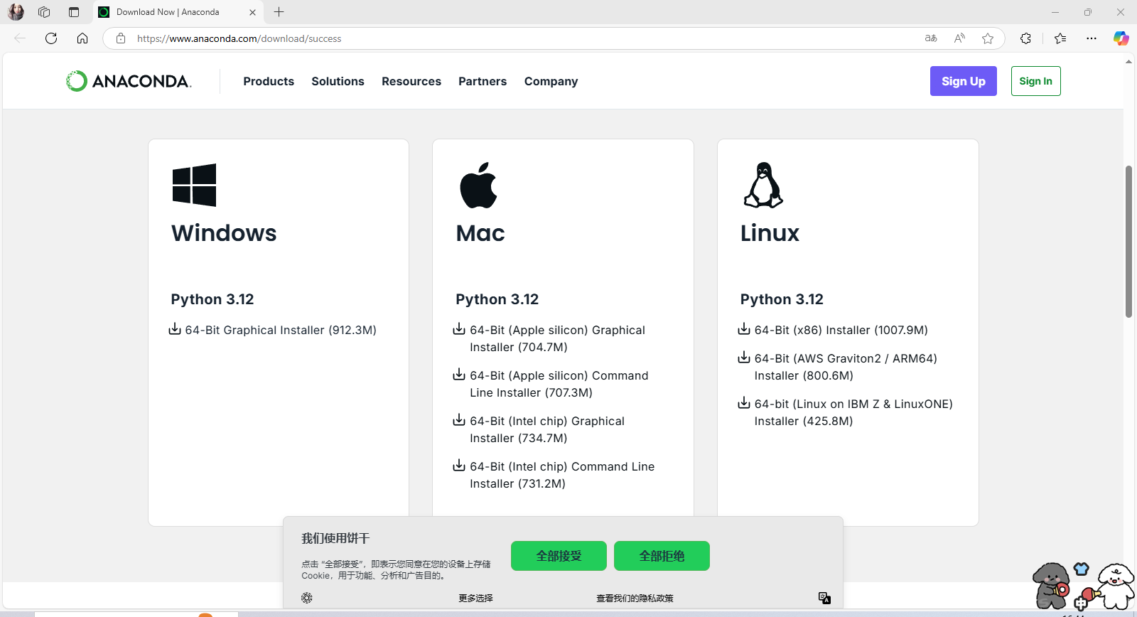 下载地址 Download Now | Anaconda(最初下载的是Windows版本,但是很容易在后面环境配置失败,而且由于残留基本上后续仍会失败,建议是下载linux版本)