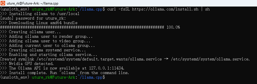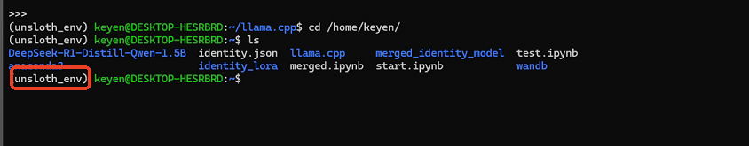 在安装完成后激活unsloth_env环境(和pycharm中询问是否使用virtual env类似)