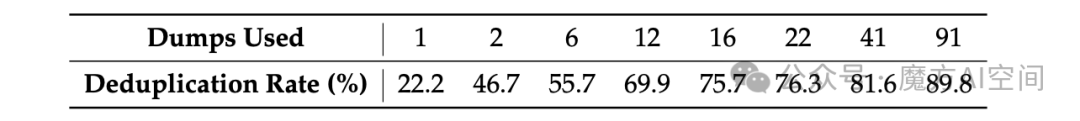 DeepSeekLLM,旨在通过长期视角推动开源语言模型的发展。首先,开发了一个包含2万亿token的数据集,并对其进行去重、过滤和重新混合。去重阶段通过跨多个dump进行去重,过滤阶段通过详细的语义和语言学评估来增强数据密度,重新混合阶段则通过增加代表性不足领域的存在来平衡数据。表1|各种常见 Crawl dumps 去重比率DeepSeek LLM的微观设计主要遵循LLaMA的设计,采用Pre