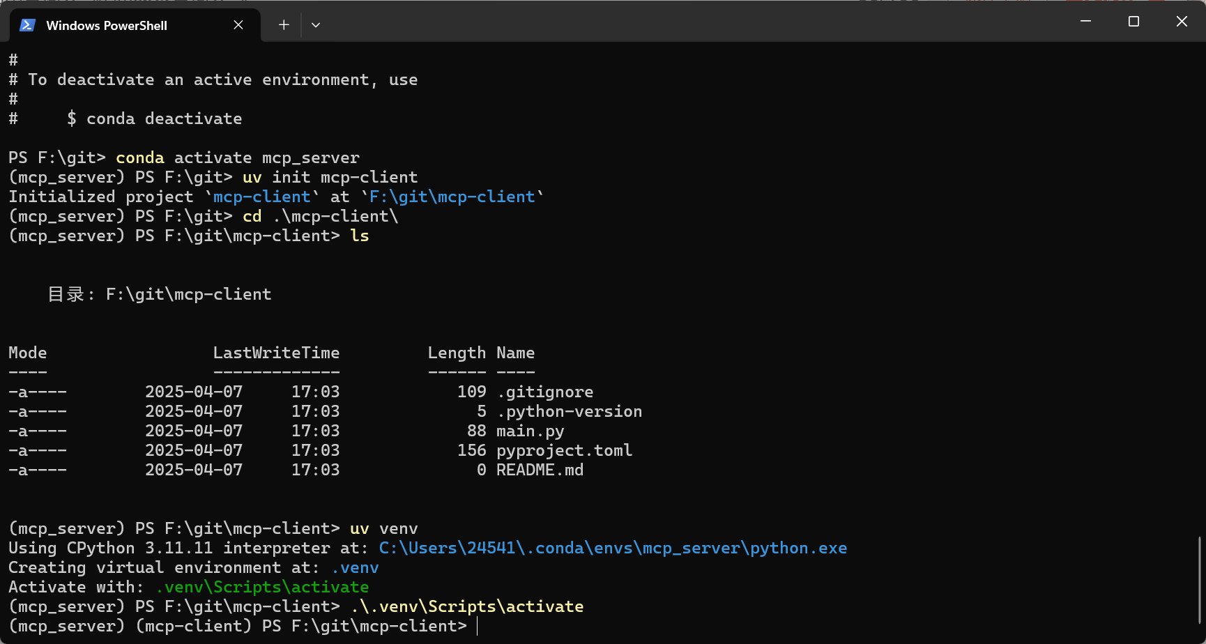 conda create -n mcp_server python=3.11