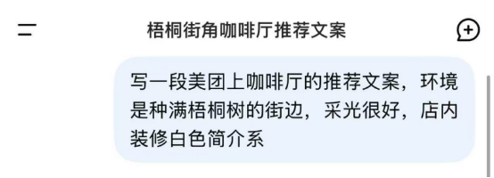 把“写一段咖啡店推荐”改为“写一段开在种满梧桐树路边、采光很好的咖啡店推荐”,让AI深刻理会场景,进行代入,这样生成的文案有画面感、情景感、而不再只是老套公式的语句堆叠。