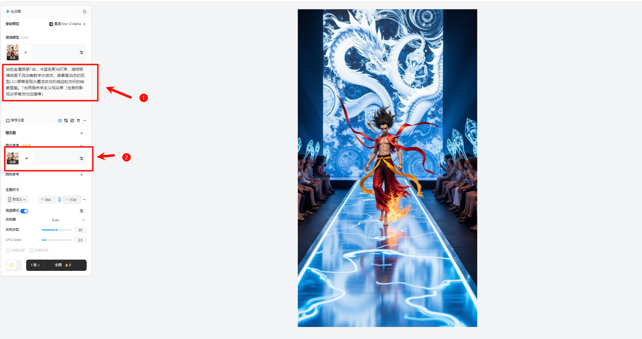 5、输入提示词并设置参数(记得每个角色都把场景固定的提示词加上)