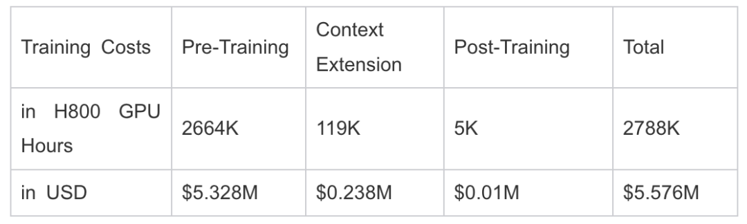 表5. DeepSeek V3 训练成本*@[Deepseek-v3]*