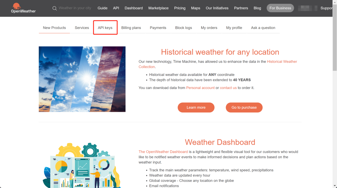 一般来说完成注册后,就会有一个已经激活的API-key。和OpenAI一样,OpenWeather的API key也创建多个。