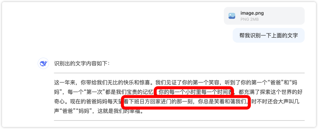 识别度很高,基本无错误,立刻就能基于这份信跟 AI 对话,真的很方便。