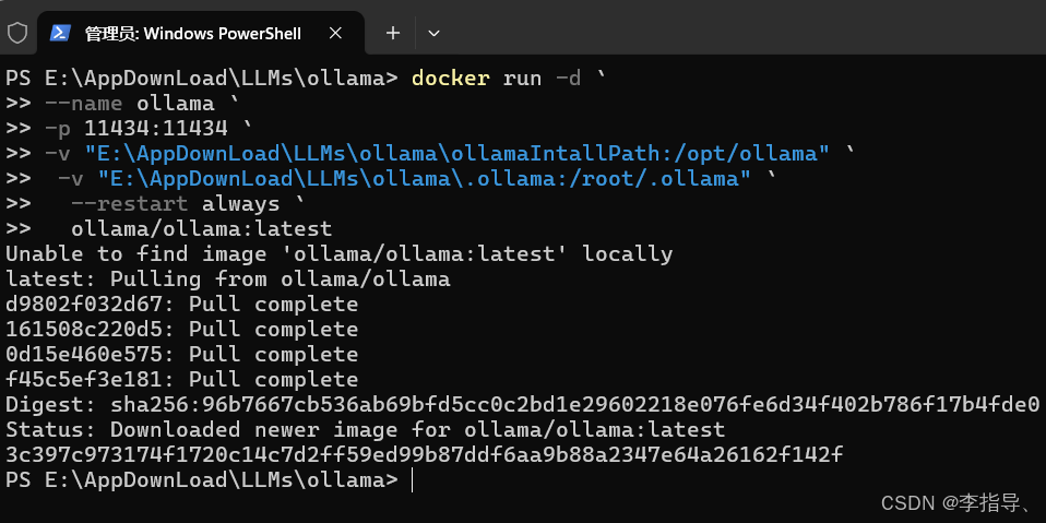 >> -v "E:\AppDownLoad\LLMs\ollama\ollamaIntallPath:/opt/ollama" `