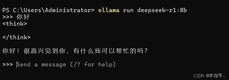 可以运行: ollama run deepseek-r1:8b 来运行模型