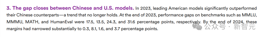 报告中强调,虽然2024年,美国在顶尖AI模型的研发上依然领先,但中美模型之间的性能差距,正在迅速缩小!