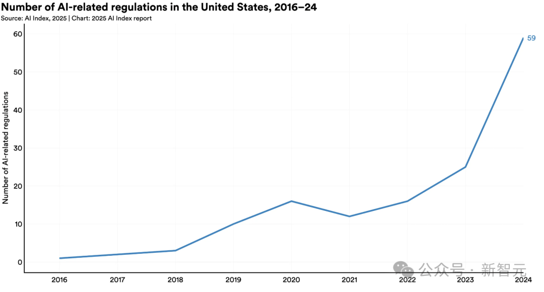 2024年美国联邦机构颁布59项AI法规,涉及部门数量翻倍。