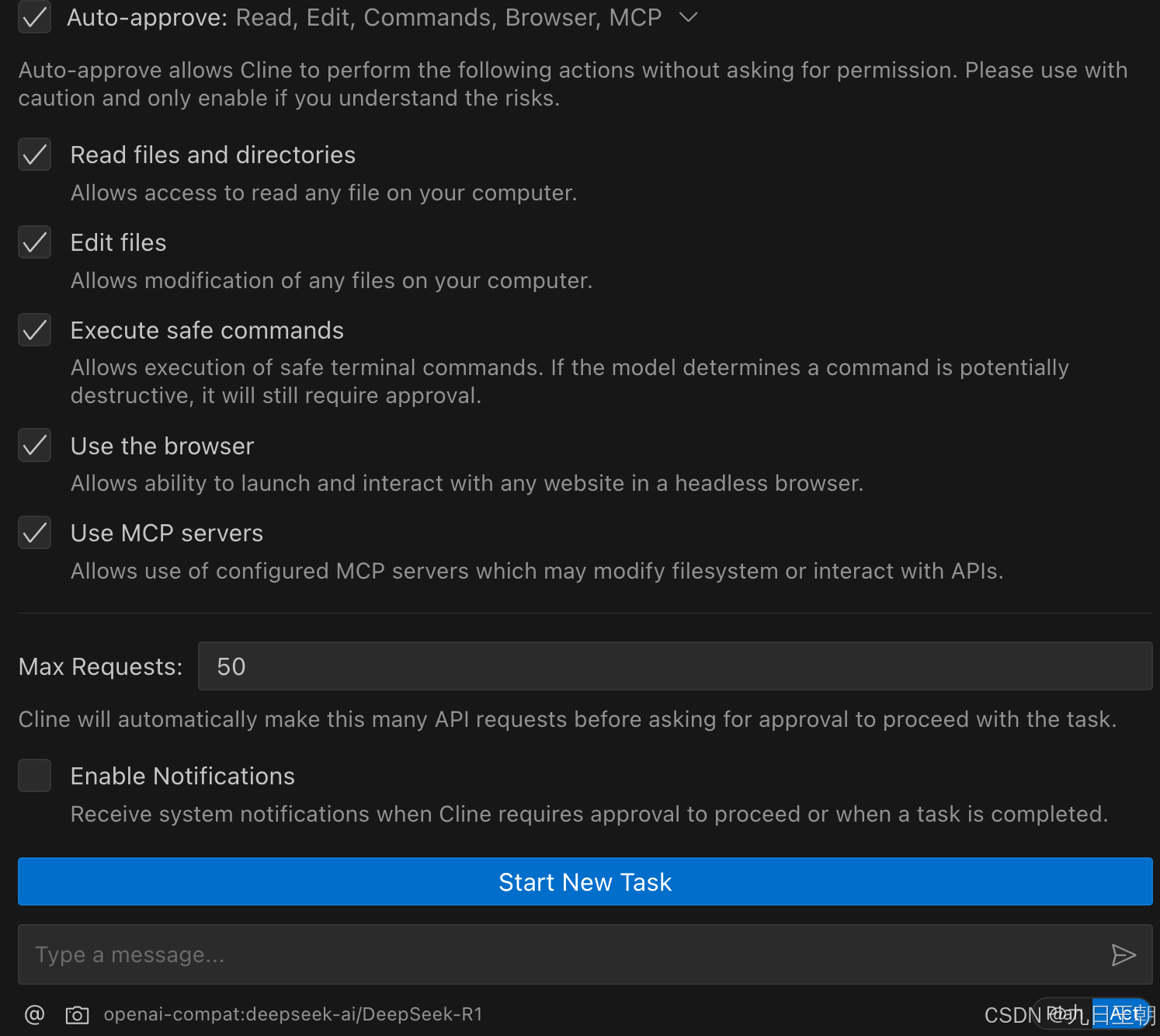 deepseek相关的就不多说了,网上有都是营销号在吹。CLine是一个AI工具插件