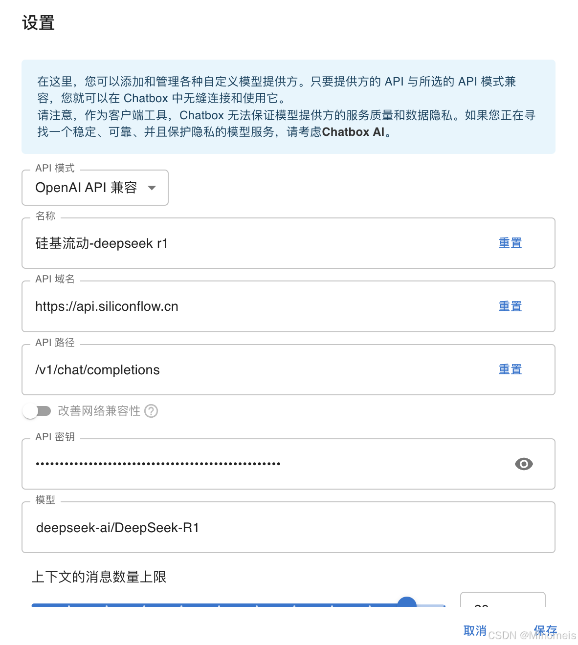 上下文的消息数量上限:默认(可自行调节)