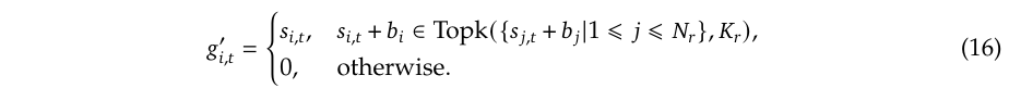 - Topk(·,K) 函数返回第 t 个 token 与所有路由专家计算得到的相关度分数中最高的 K 个值。