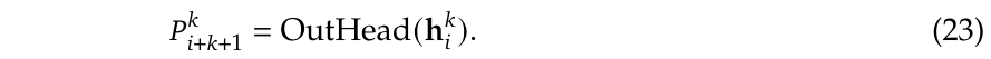 MTP 模块架构: 具体实现中,模型采用 D 个串联模块来预测 D 个额外的 token。每个 MTP 模块(第k个)包含以下组件: